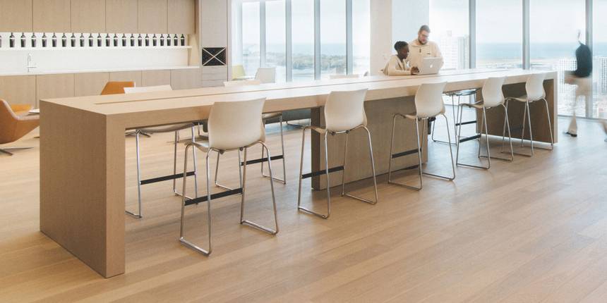 Interior designers square measure bidding sayonara to the normal table and chair, and square measure instead choosing longer, communal tables round the workplace. This style alternative encourages collaboration associate degreed community building by making an open and comprehensive house alternatively
